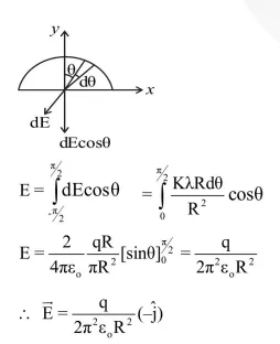 A thin semi-circular ring of radius $r$ has a positive charge $q$ distributed uniformly over it. The net field $\overrightarrow{\mathrm{E}}$ at the centre $\mathrm{O}$ is :-