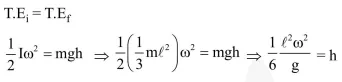 Question: A thin uniform rod of length $l$ and mass $m$ is swinging freely about a horizontal axis passing through its end. Its maximum angular speed is $\omega$. Its centre of mass rises to a maximum height of:
