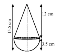 Height of the cone $=15.5-3.5=12 \mathrm{~cm}$