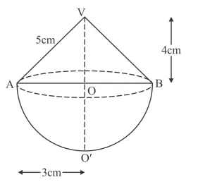 A toy is in the form of a cone surmounted on a hemisphere. The diameter of the base and the height of the cone are 6 cm and 4 cm, respectively. Determine the surface area of the toy. (Use π = 3.14)