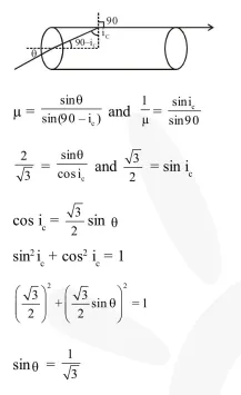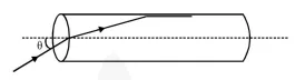 A transparent solid cyclindrical rod has a refractive index of $\frac{2}{\sqrt{3}}$. It is surrounded by air. A light ray is incident at the mid-point of one end of the rod as shown in the figure. The incident angle $\theta$ for which the light ray grazes along the wall of the rod is :-