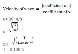 Propagates on a stretched string having a linear mass density of $1.2 \times 10 \mathrm{~m}^{-4} \mathrm{~kg} /$ $\mathrm{kg} / \mathrm{m}$. Find the tension in the string.