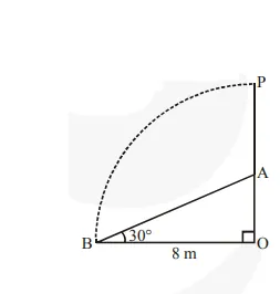 $\mathrm{AB}=\frac{\mathbf{2} \times \mathbf{8}}{\sqrt{\mathbf{3}}}=\frac{\mathbf{1 6}}{\sqrt{\mathbf{3}}} \mathrm{m}$