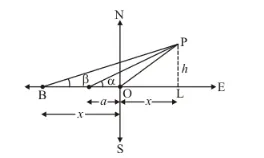Let OP be the tree and A, B be the two points such OA = a and OB = b and angle of elevation to the tops are α and β respectively. Let OL = x and PL = h