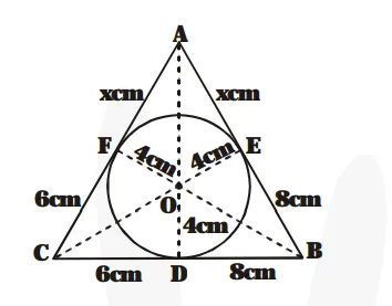 $\mathrm{b}=\mathrm{CA}=(\mathrm{x}+6) \mathrm{cm}, \mathrm{c}=\mathrm{AB}=(\mathrm{x}+8) \mathrm{cm}$