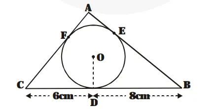 In $\Delta \mathrm{ABC}, \mathrm{a}=\mathrm{BC}=6 \mathrm{~cm}+8 \mathrm{~cm}=14 \mathrm{~cm}$