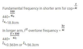 A U-tube having unequal arm-lengths has water in it. A tuning fork of frequency $440 \mathrm{~Hz}$ can set up the air in the shorter arm in its fundamental mode of vibration and the same tuning fork can set up the air in the longer arm in its first overtone vibration. Find the length of the air columns. Neglect any end effect and assume that the speed of sound in air $=330 \mathrm{~m} \mathrm{} \mathrm{s}^{-1}$.