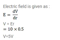A uniform electric field of $10 \mathrm{~N} / \mathrm{C}$ exists in the vertically downward direction. Find the increase in the electric potential as one goes up through a height of $50 \mathrm{~cm}$.