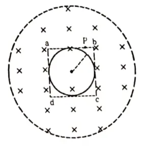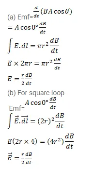 (b) Consider a point $\mathrm{P}$ on the side of the square circumscribing the circle. Show that the component of the induced electric field at $P$ along ba is the same as the magnitude found in part (a).