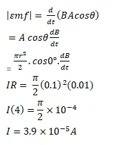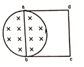 A uniform magnetic field $B$ exists in a cylindrical region of radius $10 \mathrm{~cm}$ as shown in figure. A uniform wire of length $80 \mathrm{~cm}$ and resistance $4.0 \Omega$ is bent into a square frame and is placed with one side along a diameter of the cylindrical region. If the magnetic field increases at a constant rate of $0.010 \mathrm{~T} / \mathrm{s}$, find the current induced in the frame.