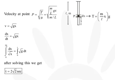 A uniform string of length $20 \mathrm{~m}$ is suspended from a rigid support. A short wave pulse is introduced at its lowest end. It starts moving up the string. The time taken to reach the support is :(take $\mathrm{g}=10 \mathrm{~ms}^{-2}$ )