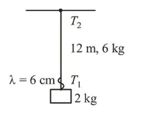 $n=\frac{V}{\lambda}=\sqrt{\frac{T}{M}} \lambda_{2}=\sqrt{\frac{T_{2}}{T_{1}} \lambda_{1}} \quad T_{2}=8 \mathrm{~g}($ Top $)$