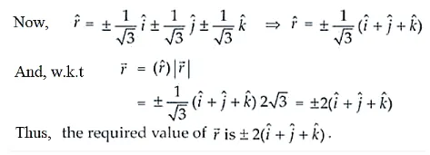 A vector $\vec{r}$ is inclined at equal angles to the three axes. If the magnitude of $\vec{r}$ is $2 \sqrt{3}$ units, find $\vec{r}$