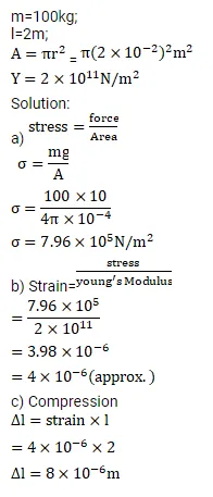 (c) the compression of the cylinder. Young's modulus of the metal $=2 \times 10^{11} \mathrm{~N} / \mathrm{m}^{2}$