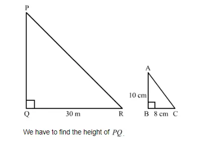 $\frac{10 \mathrm{~cm}}{8 \mathrm{~cm}}=\frac{P Q}{30 \mathrm{~m}}$