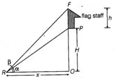 Given that, height of flag staff = h = FP and ∠PRO = α, ∠FRO = β