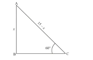 $\Rightarrow \quad \sin 60^{\circ}=\frac{x}{15-x}$