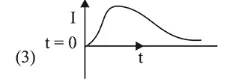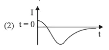 A very long solenoid of radius $R$ is carrying current $\mathrm{I}(\mathrm{t})=\mathrm{kte}^{-\alpha t}(k>0)$, as a function of time $(t \geq 0)$. Counter clockwise current is taken to be positive. A circular conducting coil of radius $2 R$ is placed in the equatorial plane of the solenoid and concentric with the solenoid. The current induced in the outer coil is correctly depicted, as a function of time, by: