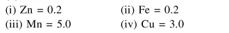 A water sample has ppm level concentration of the following metals: $\mathrm{Fe}=0.2 ; \mathrm{Mn}=5.0 ; \mathrm{Cu}=3.0$; $\mathrm{Zn}=5.0$. The metal that makes the water sample unsuitable drinking is :