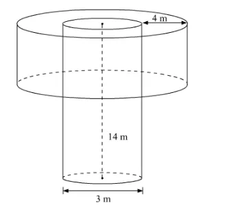 $\pi \times(1.5)^{2} \times 14=\pi \times\left[(5.5)^{2}-(1.5)^{2}\right] \times h$