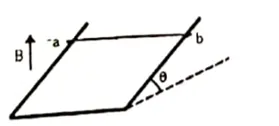 A wire ab of length I, mass $m$ and resistance $R$ slides on a smooth, thick pair of metallic rails joined at the bottom as shown in figure. The plane of the rails makes an angle $\theta$ with the horizontal. A vertical magnetic field B exists in the region. If the wire slides on the rails at a constant speed v, show that