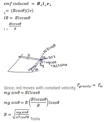 $B=\sqrt{\frac{m g \sin \theta}{v l^{2} \cos ^{2} \theta}}$