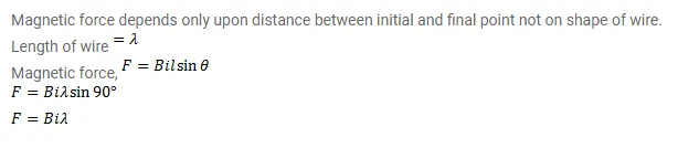 A wire, carrying a current $i$, is kept in the X-Y plane along the curve $y=A \sin \left(\frac{2 \pi}{\lambda} x\right)$ A magnetic field B exists in the $z-$
