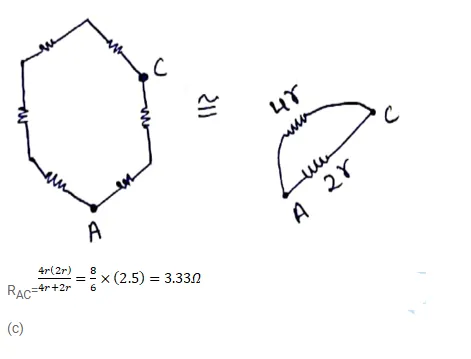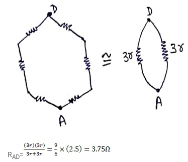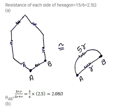 A wire of resistance $15.0 \Omega$ is bent to form a regular hexagon ABCDEFA. Find the equivalent resistance of the loop between the points (a) $A$ and $B$, (b) $A$ and $C$ and (c) $A$ and $D$.