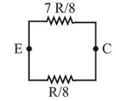 $\therefore \mathrm{R}_{\mathrm{eq}}=\frac{\left(\frac{7 R}{8}\right)\left(\frac{R}{8}\right)}{R}=\frac{7 R}{64}$
