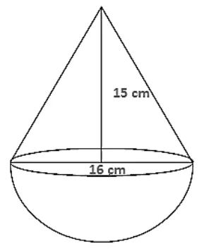 A wooden toy is in the form of a cone surmounted on a hemisphere. The diameter of the base of the cone is $16 \mathrm{~cm}$ and its height is $15 \mathrm{~cm}$. Find the cost of painting the toy at Rs. 7 per $100 \mathrm{~cm}$