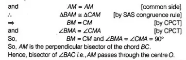 AB and AC are two equal chords of a circle. Prove that the bisector of the angle BAC passes through the centre of the circle.