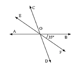 AB, CD and EF are three concurrent lines passing through the point O such that OF bisects BOD. If BOF = 35. Find BOC and AOD.