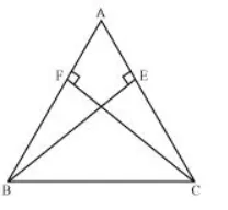 ABC is a triangle in which altitudes BE and CF to sides AC and AB are equal (see the given figure). Show that<br/><br/>(i) $\triangle \mathrm{ABE} \cong \triangle \mathrm{ACF}$<br/><br/>(ii) $A B=A C$, i.e., $A B C$ is an isosceles triangle.