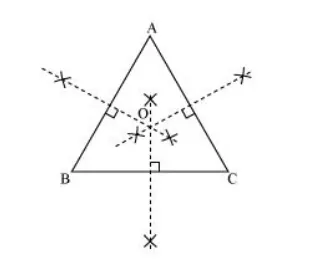 In ΔABC, we can find the circumcentre by drawing the perpendicular bisectors of sides AB, BC, and CA of this triangle. O is the point where these bisectors are meeting together. Therefore, O is the point which is equidistant from all the vertices of ΔABC.