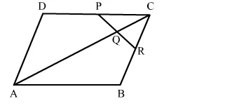 $A B C D$ is a parallelogram in which $P$ is the midpoint of $D C$ and $Q$ is a point on $A C$ such that $C Q=\frac{1}{4} A C .$ If $P Q$ produced meets $B C$ at $R$, prove that $R$ is the midpoint $B C$.