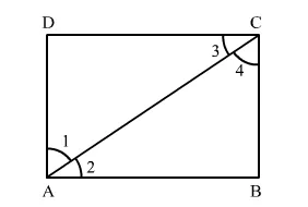 Given: In rectangle ABCD, AC bisects ∠A, i.e. ∠1 = ∠2 and AC bisects ∠C, i.e. ∠3 = ∠4.