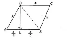 Let sides of a rhombus be $\quad A B=B C=C D=D A=x$