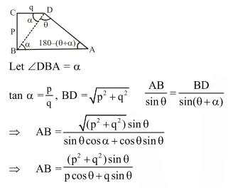 $\mathrm{ABCD}$ is a trapezium such that $\mathrm{AB}$ and $C D$ are parallel and $\mathrm{BC} \perp \mathrm{CD}$. If $\angle \mathrm{ADB}=\theta, \mathrm{BC}$ $=\mathrm{p}$ and $\mathrm{CD}=\mathrm{q}$, then $\mathrm{AB}$ is equal to