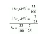 $18 u+12 v=\frac{33}{100} \cdots(v)$