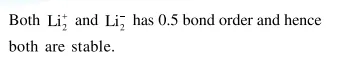 $\mathrm{Li}_{2}^{+}$is unstable and $\mathrm{Li}_{2}^{-}$is stable