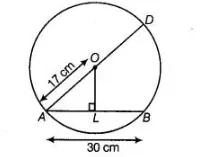 AD is a diameter of a circle and AB is a chord. If AD = 34 cm, AB = 30 cm, the distance of AB from the centre of the circle is