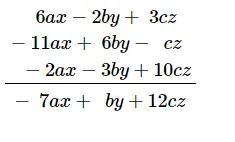 6ax − 2by + 3cz, 6by − 11ax − cz and 10cz − 2ax − 3by