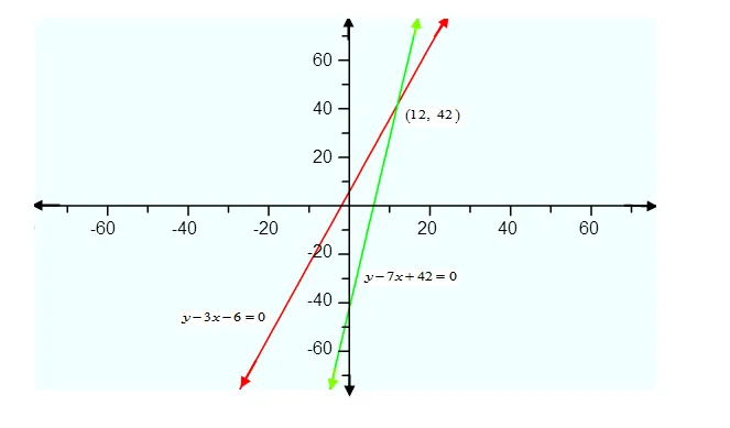 Hence the algebraic representation are $y-3 x-6=0$ and $y-7 x+42=0$