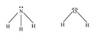 The molecular geometry of $\mathrm{NH}_{3}$ and $\mathrm{H}_{2} \mathrm{O}$ can be shown as: