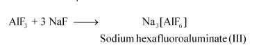Hydrogen fluoride (HF) is a covalent compound and has a very strong intermolecular hydrogen-bonding. Thus, it does not provide ions and aluminium fluoride (AlF) does not dissolve in it. Sodium fluoride (NaF) is an ionic compound and when it is added to the mixture, AlF dissolves. This is because of the availability of free F–. The reaction involved in the process is: