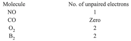 Since $\mathrm{CO}$ has no unpaired electron. Hence $\mathrm{CO}$ is diamagnetic.