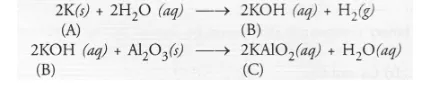 hydroxide. This upon reacting with aluminium oxide (Al2O3) forms potassium metaluminate ‘C’.