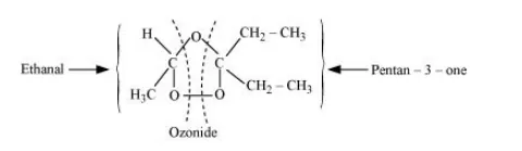 This ozonide is formed as an addition of ozone to ‘A’. The desired structure of ‘A’ can be obtained by the removal of ozone from the ozonide. Hence, the structural formula of ‘A’ is: