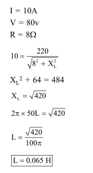 An arc lamp requires a direct current of $10 \mathrm{~A}$ at $80 \mathrm{~V}$ to function. If it is connected to a $220 \mathrm{~V}(\mathrm{rms}$ ), $50 \mathrm{~Hz}$ AC supply, the series inductor needed for it to work is close to :-