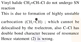 Assertion (A) : Vinyl halides do not undergo nucleophilic substitution easily.